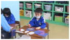 家庭生活で、グループ毎に分かれ「調理」の学習をしています。グループはピザトーストグループ、ホットケーキグループ、フルーチェグループです。各グループとも調理に挑戦しています。